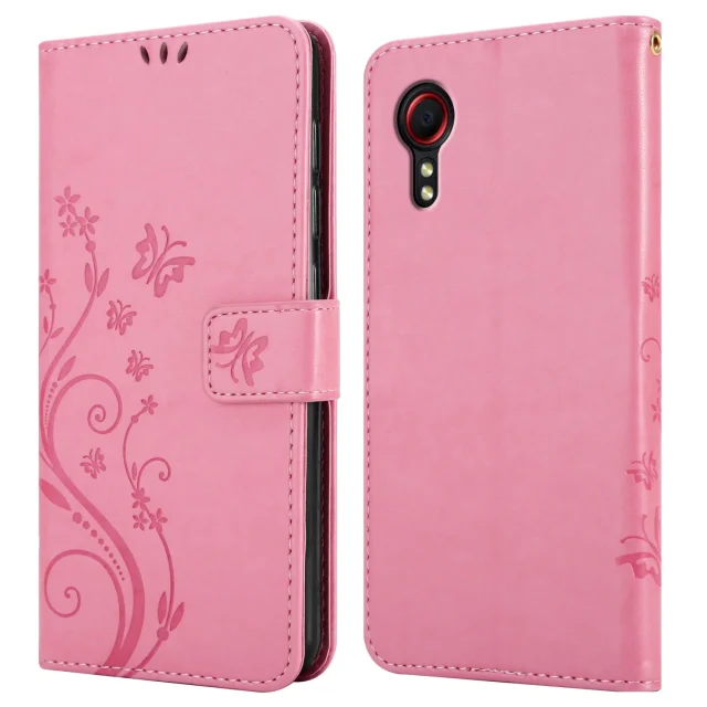 CADORABO Samsung v cvetlični roza barvi - zaščitni pokrov pri oblikovanju cvetja z magnetnim zapiranjem, stoječimi funkcijami in režami za kartice