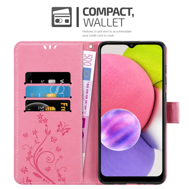 CADORABO Samsung v cvetlični roza barvi - zaščitni pokrov pri oblikovanju cvetja z magnetnim zapiranjem, stoječimi funkcijami in režami za kartice