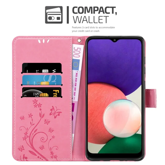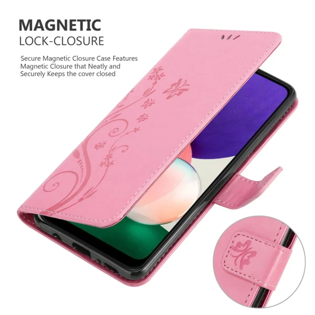 CADORABO Samsung v cvetlični roza barvi - zaščitni pokrov pri oblikovanju cvetja z magnetnim zapiranjem, stoječimi funkcijami in režami za kartice