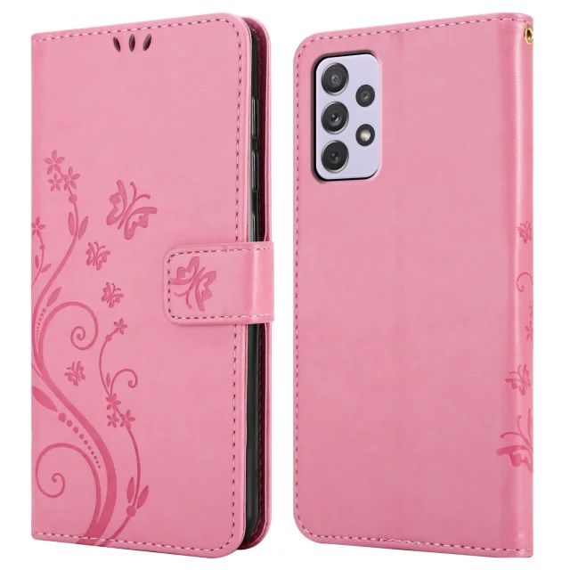 CADORABO Samsung v cvetlični roza barvi - zaščitni pokrov pri oblikovanju cvetja z magnetnim zapiranjem, stoječimi funkcijami in režami za kartice