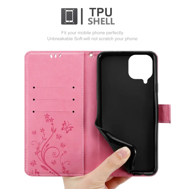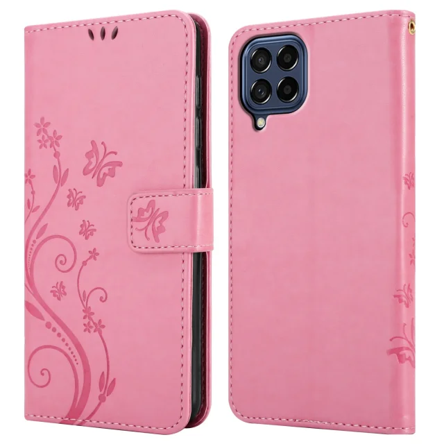 CADORABO Samsung v cvetlični roza barvi - zaščitni pokrov pri oblikovanju cvetja z magnetnim zapiranjem, stoječimi funkcijami in režami za kartice