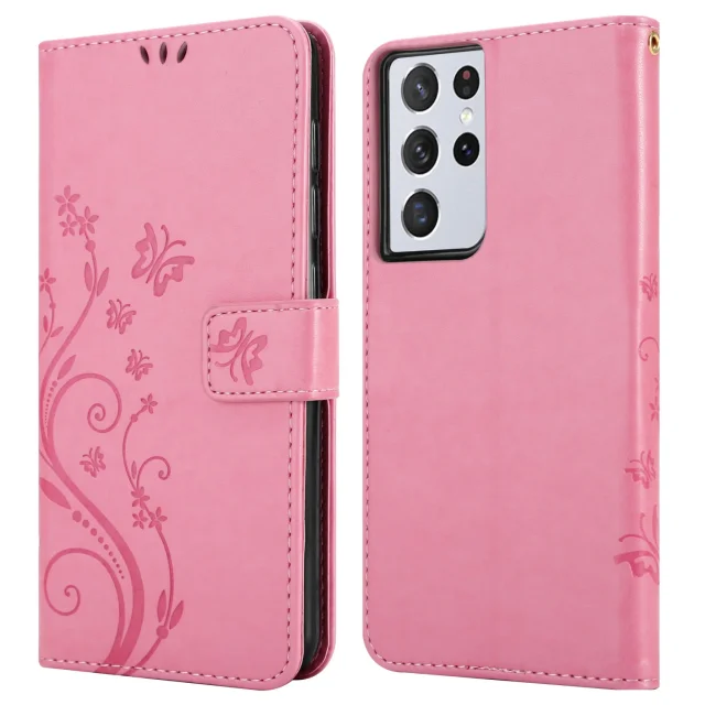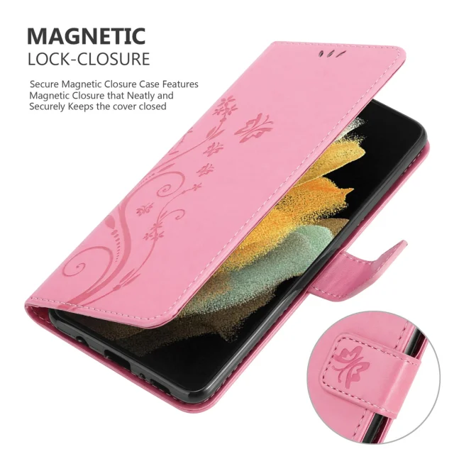 CADORABO Samsung v cvetlični roza barvi - zaščitni pokrov pri oblikovanju cvetja z magnetnim zapiranjem, stoječimi funkcijami in režami za kartice
