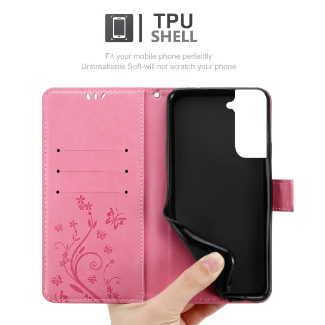 CADORABO Samsung v cvetlični roza barvi - zaščitni pokrov pri oblikovanju cvetja z magnetnim zapiranjem, stoječimi funkcijami in režami za kartice
