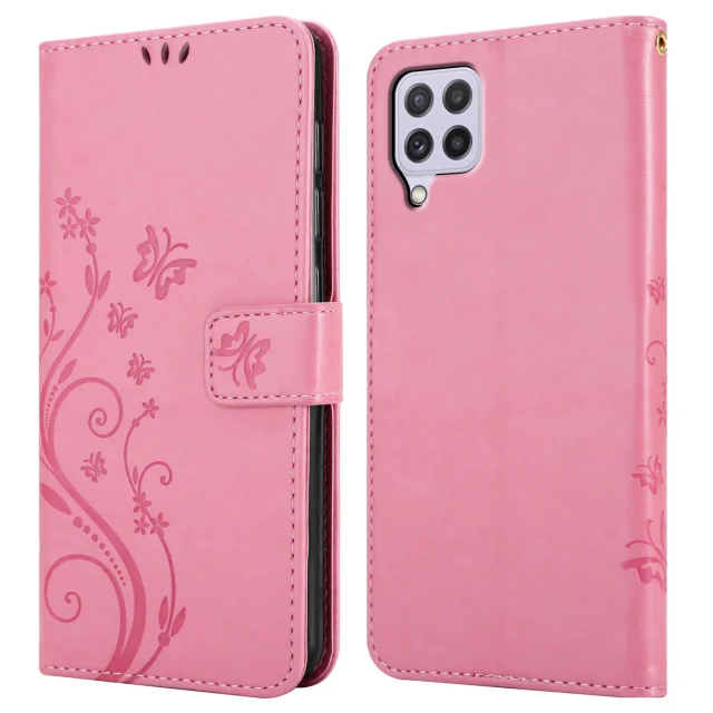 CADORABO Samsung v cvetlični roza barvi - zaščitni pokrov pri oblikovanju cvetja z magnetnim zapiranjem, stoječimi funkcijami in režami za kartice