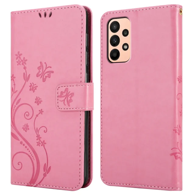 CADORABO Samsung v cvetlični roza barvi - zaščitni pokrov pri oblikovanju cvetja z magnetnim zapiranjem, stoječimi funkcijami in režami za kartice
