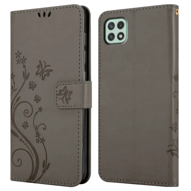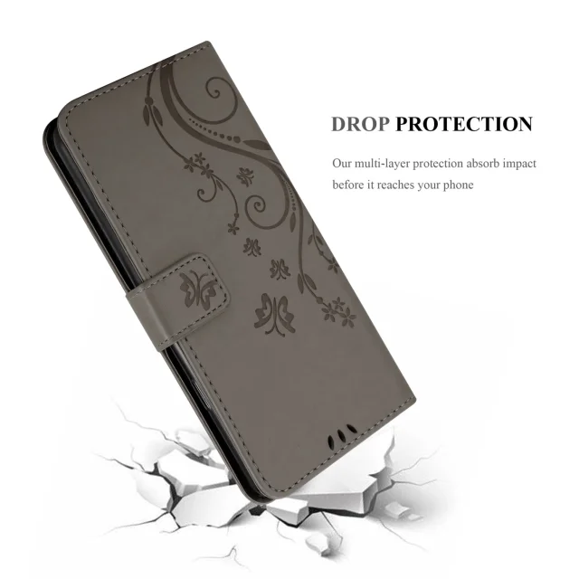 CADORABO Samsung v cvetlični sivi barvi - zaščitni pokrov v oblikovanju cvetja z magnetnim zapiranjem, stoječimi funkcijami in režami za kartice