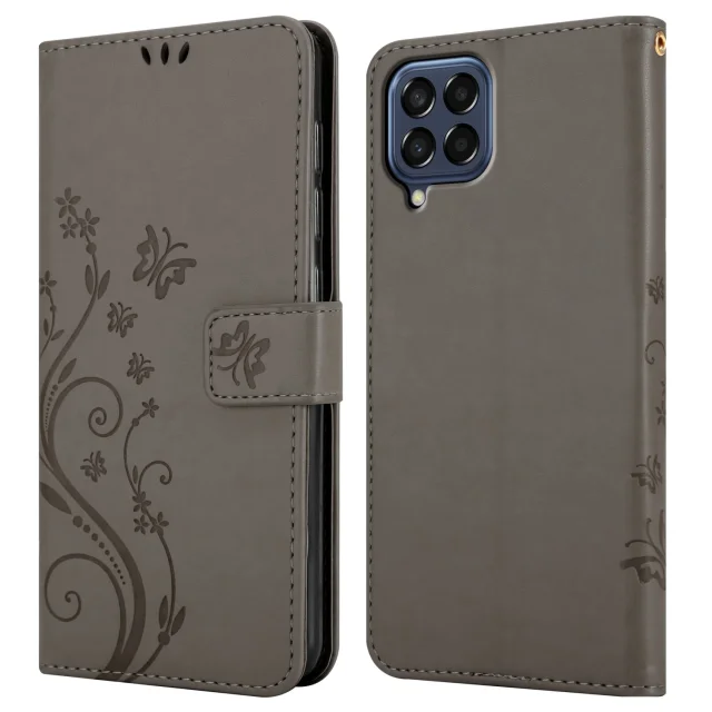 CADORABO Samsung v cvetlični sivi barvi - zaščitni pokrov v oblikovanju cvetja z magnetnim zapiranjem, stoječimi funkcijami in režami za kartice