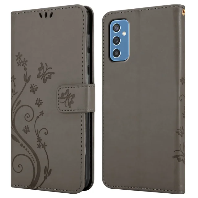 CADORABO Samsung v cvetlični sivi barvi - zaščitni pokrov v oblikovanju cvetja z magnetnim zapiranjem, stoječimi funkcijami in režami za kartice