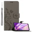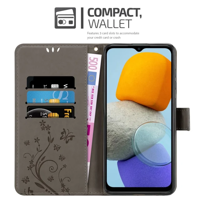 CADORABO Samsung v cvetlični sivi barvi - zaščitni pokrov v oblikovanju cvetja z magnetnim zapiranjem, stoječimi funkcijami in režami za kartice