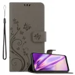 CADORABO Samsung v cvetlični sivi barvi - zaščitni pokrov v oblikovanju cvetja z magnetnim zapiranjem, stoječimi funkcijami in režami za kartice