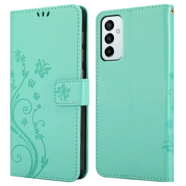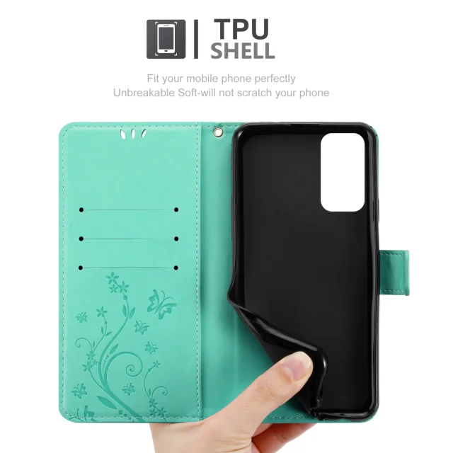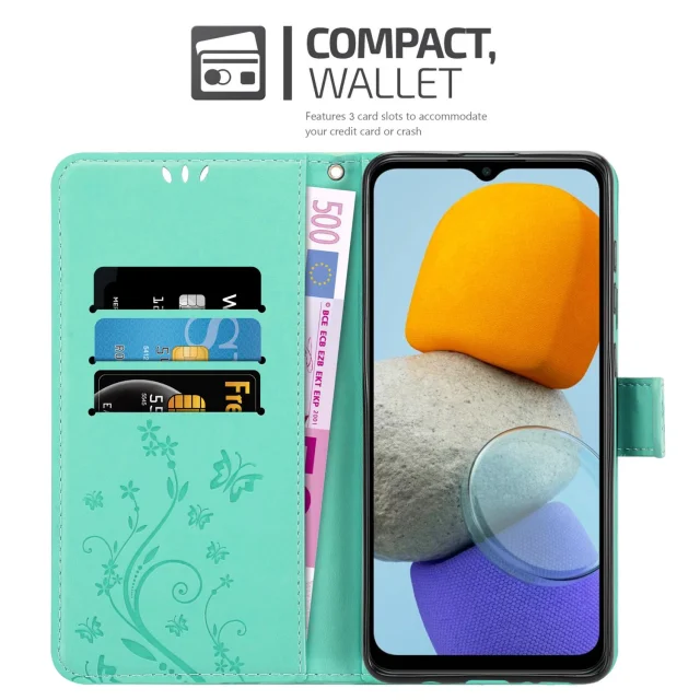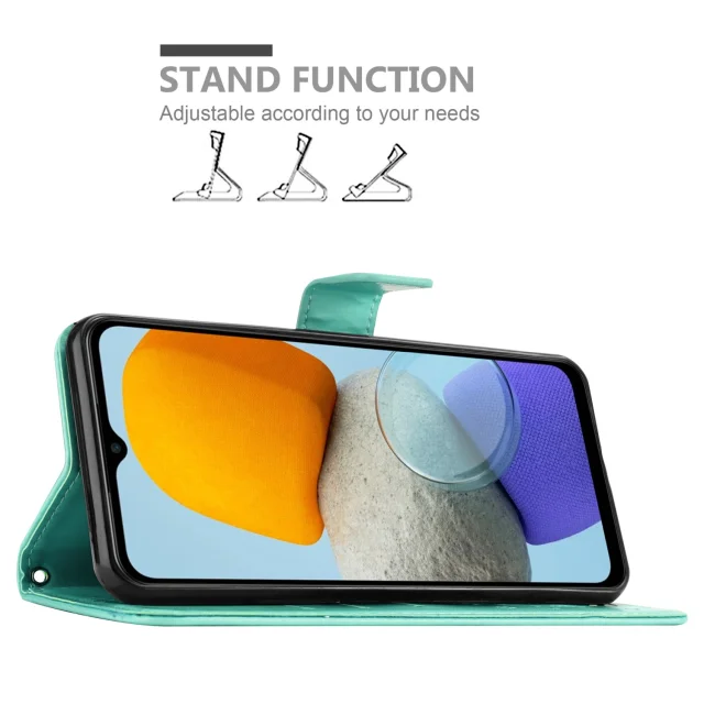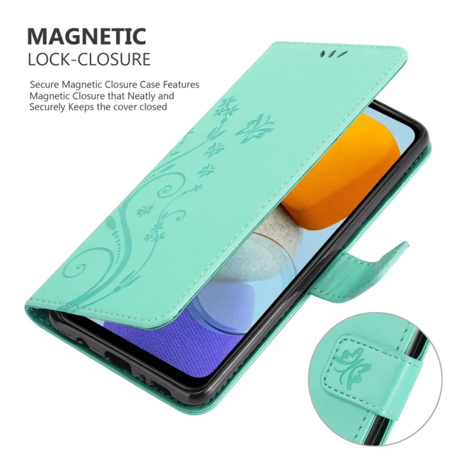CADORABO Samsung v cvetlični turkizni - Zaščitni pokrov pri oblikovanju cvetja z magnetnim zapiranjem, stoječimi funkcijami in režami za kartice