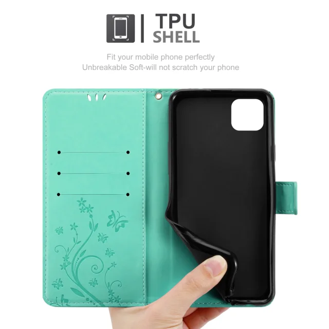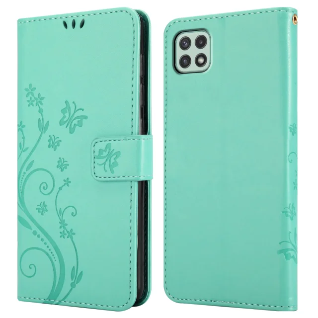 CADORABO Samsung v cvetlični turkizni - Zaščitni pokrov pri oblikovanju cvetja z magnetnim zapiranjem, stoječimi funkcijami in režami za kartice