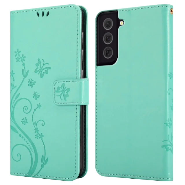CADORABO Samsung v cvetlični turkizni - Zaščitni pokrov pri oblikovanju cvetja z magnetnim zapiranjem, stoječimi funkcijami in režami za kartice