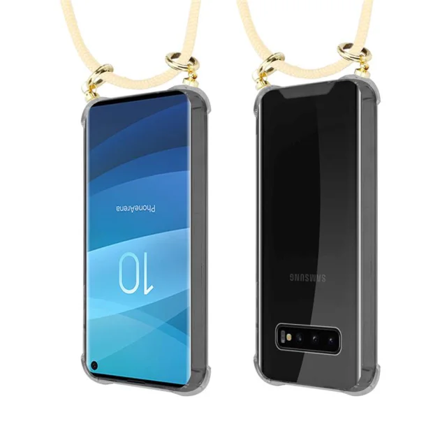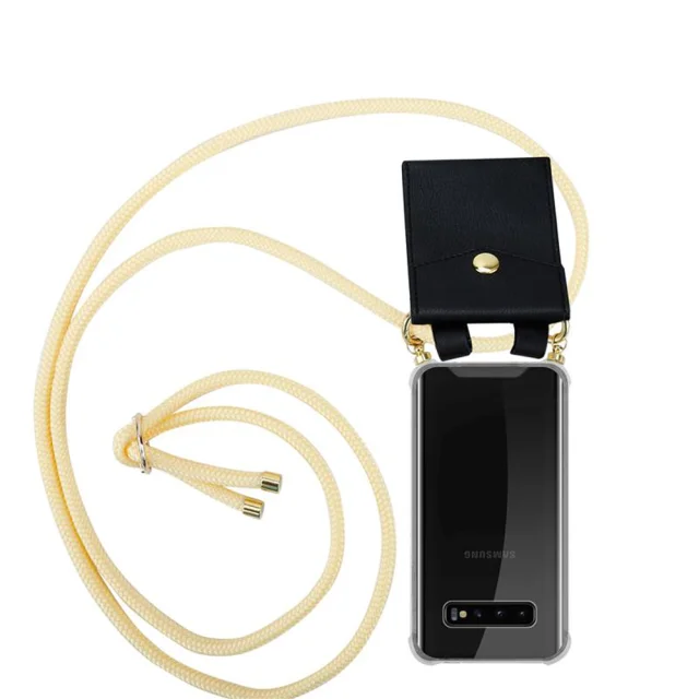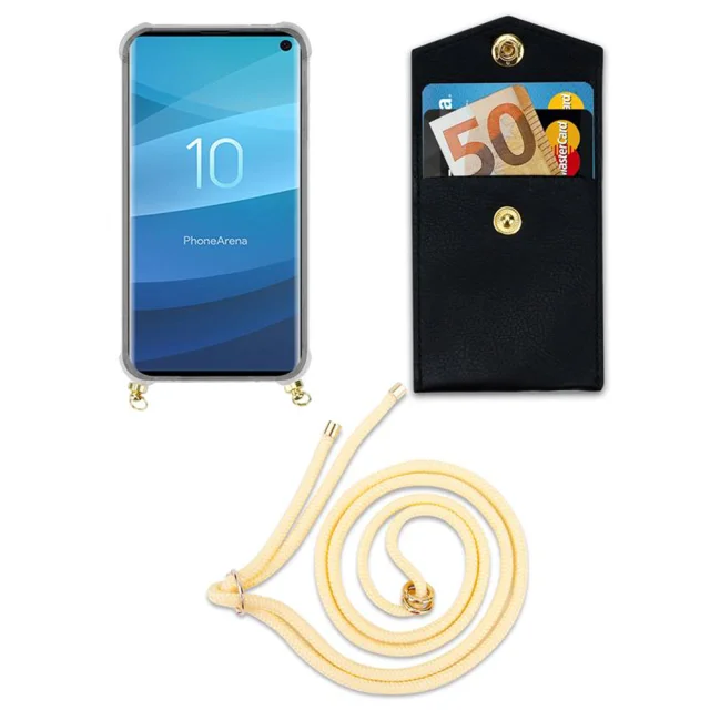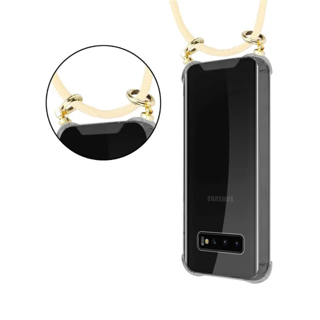 CADORABO Samsung v kremnem bež - silikonski zaščitni pokrov z zlatimi obroči, kabelskim pasom in snemljivim ohišjem