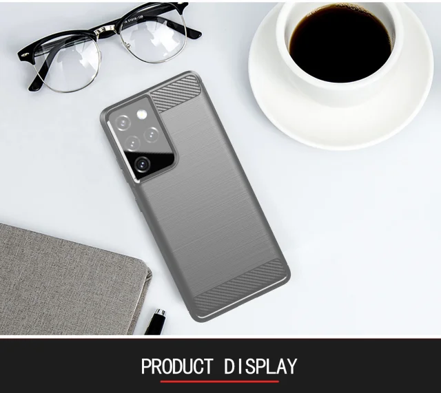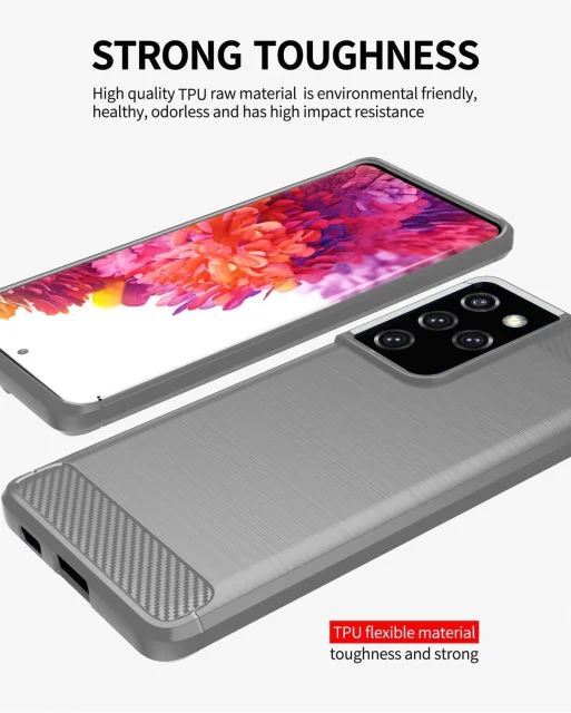 CADORABO Samsung v krtačenem sivem - zaščitnem pokrovu, narejen iz fleksibilnega silikona TPU v videzu iz nerjavečega jekla ogljika