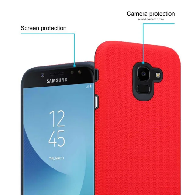 CADORABO Samsung v nageljni rdeči - zunanji hibridni zaščitni pokrov z dodatnim oprijemom površine v trikotniku, narejen iz silikona in plastike