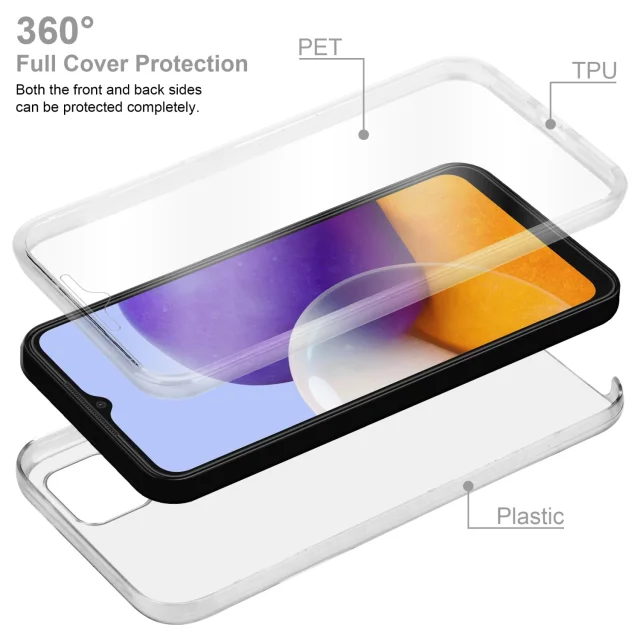 CADORABO Samsung v prozorni - 360 -° zaščitni pokrov celotnega telesa - zaščita pred sprednjim in hrbtom, vsestransko zaščito z zaščitnikom zaslona