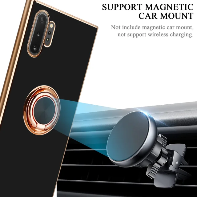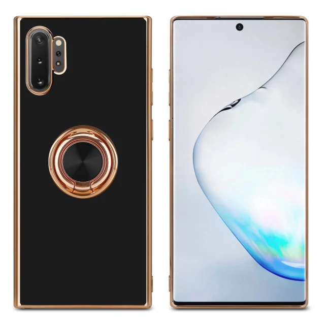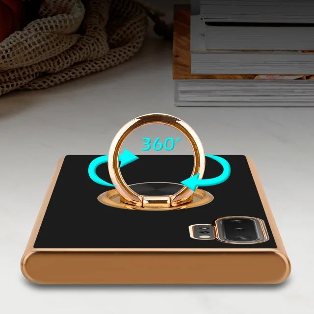 CADORABO Samsung v sijajnem črni barvi - Zlato z obročem silikonski/TPU ovitek z zaščito pred kamero in držalom za magnetni avtomobil