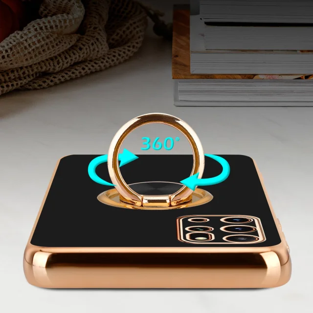 CADORABO Samsung v sijajnem črni barvi - Zlato z obročem silikonski/TPU ovitek z zaščito pred kamero in držalom za magnetni avtomobil