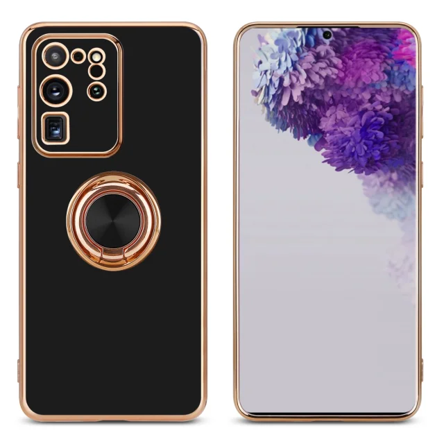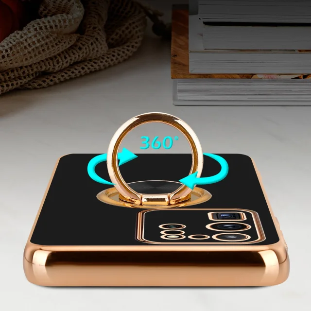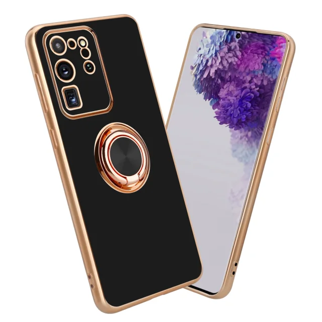 CADORABO Samsung v sijajnem črni barvi - Zlato z obročem silikonski/TPU ovitek z zaščito pred kamero in držalom za magnetni avtomobil