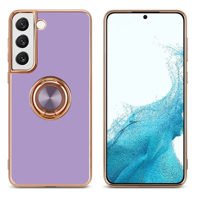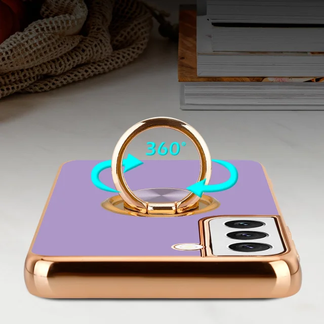 CADORABO Samsung v sijajnem svetlobnem vijoličnem - zlatu z obročem silikonski/TPU ovitek z zaščito pred kamero in držalo magnetnega avtomobi