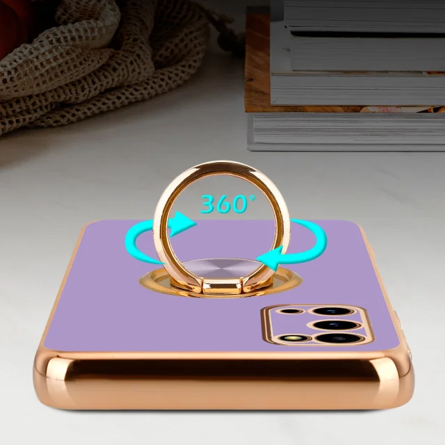 CADORABO Samsung v sijajnem svetlobnem vijoličnem - zlatu z obročem silikonski/TPU ovitek z zaščito pred kamero in držalo magnetnega avtomobi