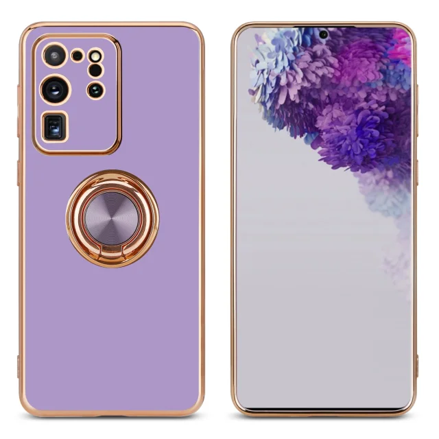 CADORABO Samsung v sijajnem svetlobnem vijoličnem - zlatu z obročem silikonski/TPU ovitek z zaščito pred kamero in držalo magnetnega avtomobi