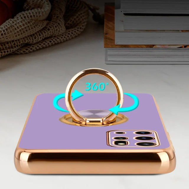 CADORABO Samsung v sijajnem svetlobnem vijoličnem - zlatu z obročem silikonski/TPU ovitek z zaščito pred kamero in držalo magnetnega avtomobi