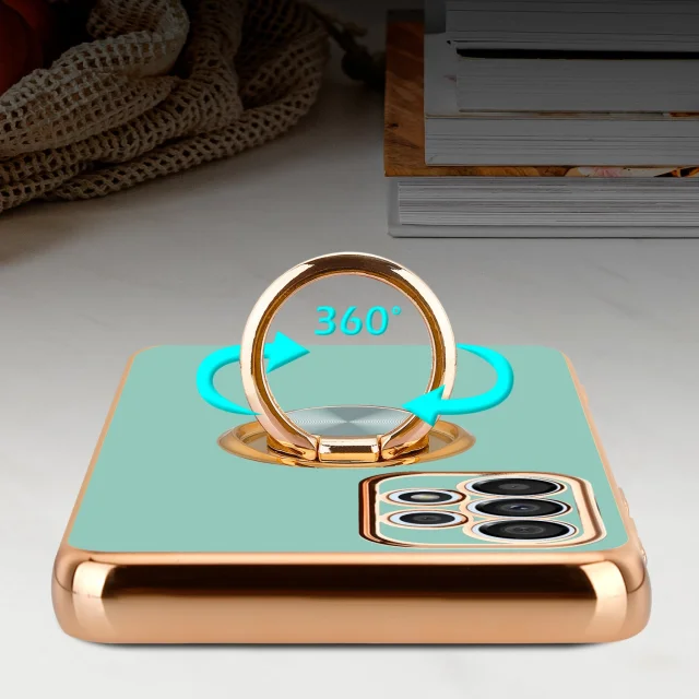 CADORABO Samsung v sijajni turkizni - Zlato z obročem silikonski/TPU ovitek z zaščito pred kamero in držalo magnetnega avtomobila