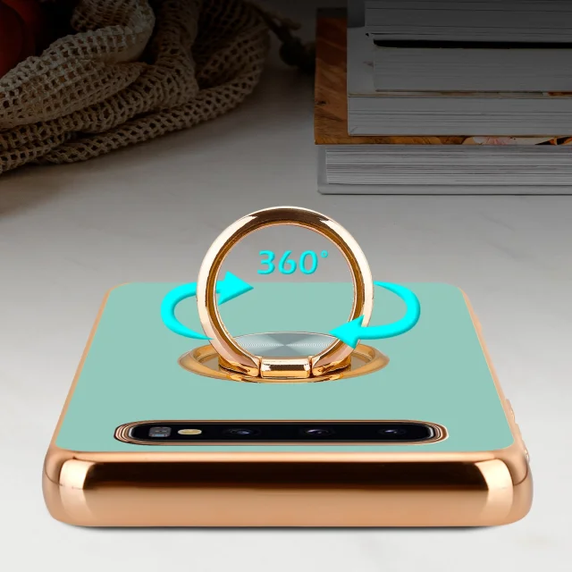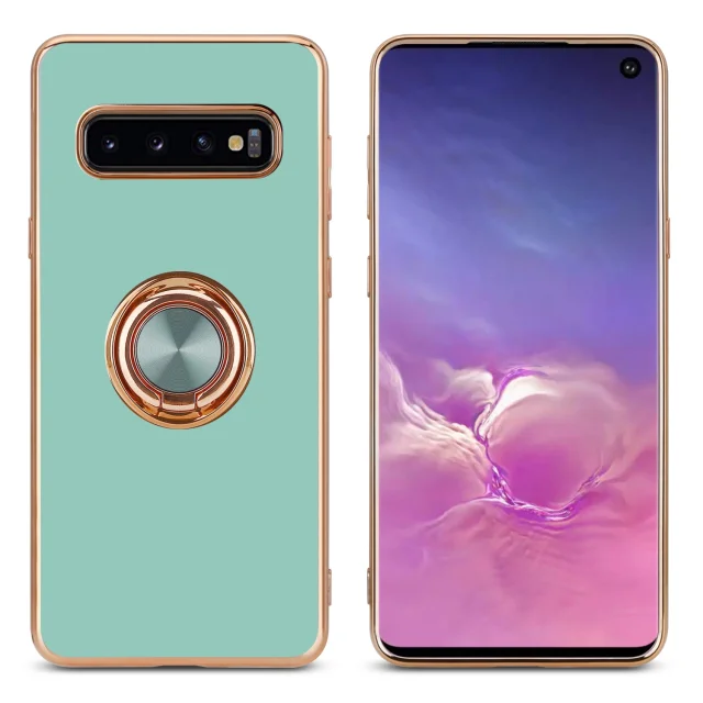 CADORABO Samsung v sijajni turkizni - Zlato z obročem silikonski/TPU ovitek z zaščito pred kamero in držalo magnetnega avtomobila