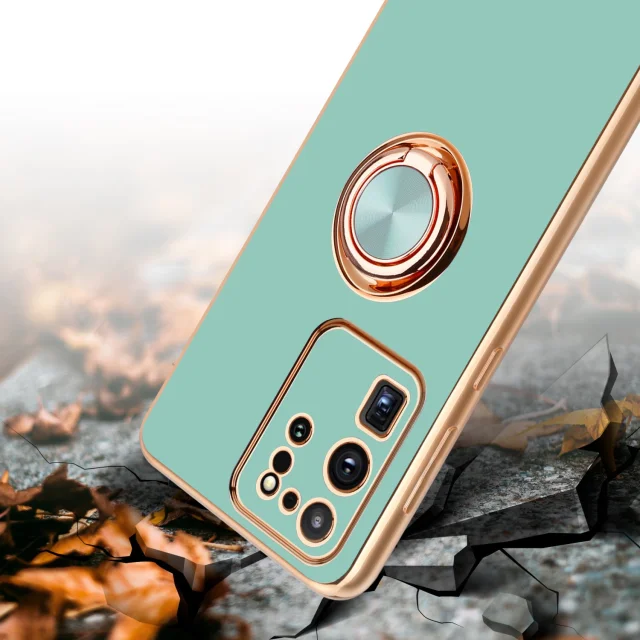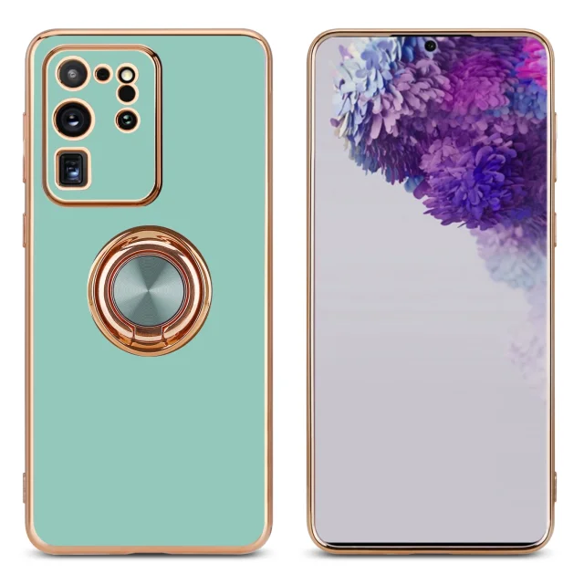 CADORABO Samsung v sijajni turkizni - Zlato z obročem silikonski/TPU ovitek z zaščito pred kamero in držalo magnetnega avtomobila