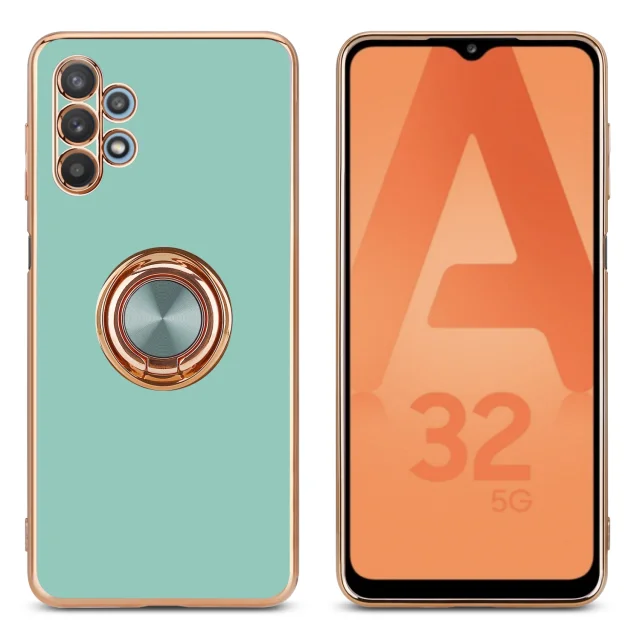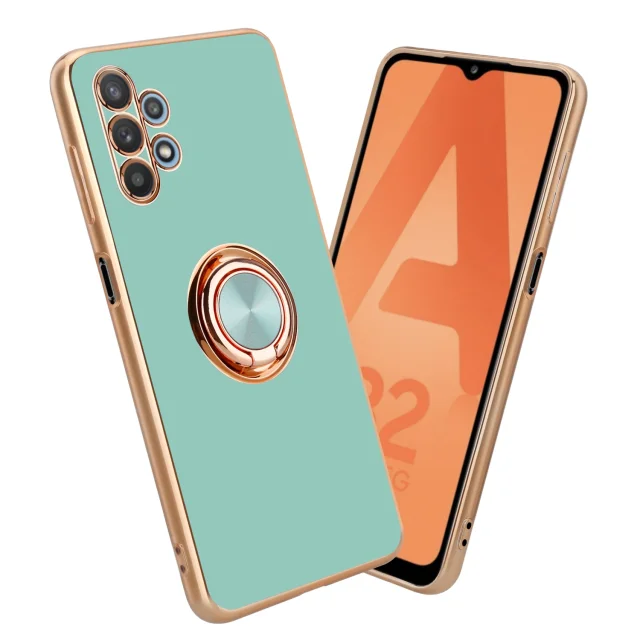 CADORABO Samsung v sijajni turkizni - Zlato z obročem silikonski/TPU ovitek z zaščito pred kamero in držalo magnetnega avtomobila