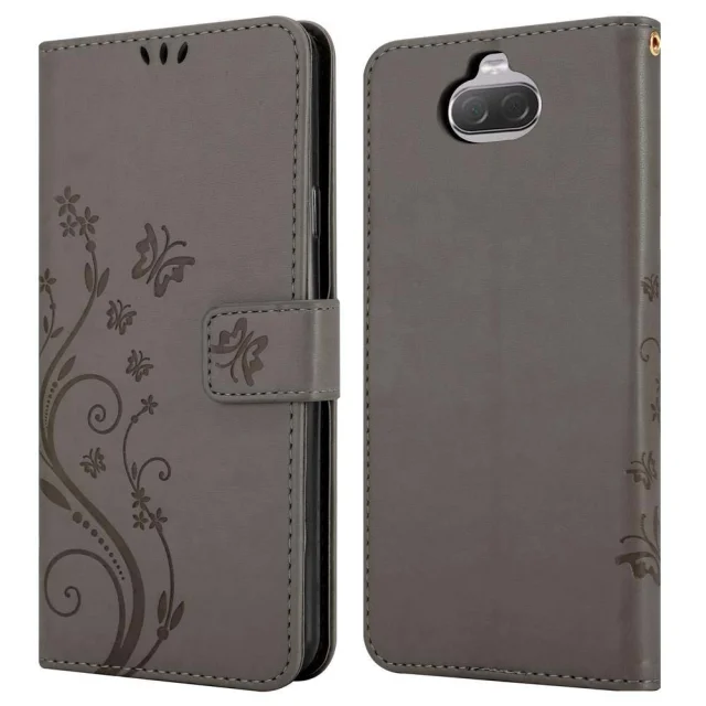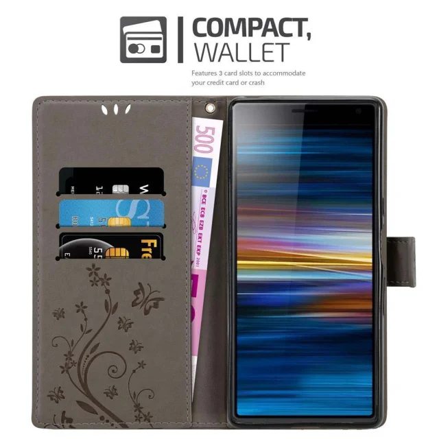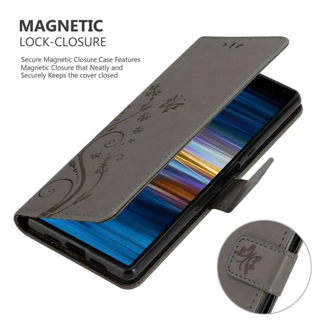 CADORABO Sony Xperia 10/Xperia XA3 v klasična črna - ovitek v cvetličnem dizajnu z magnetnim zapiranjem, stoječo funkcijo in režami za kartice