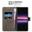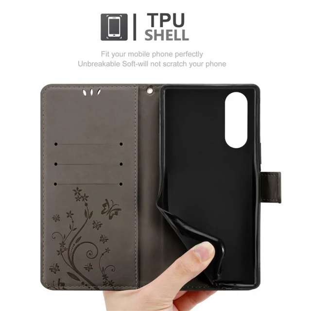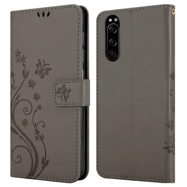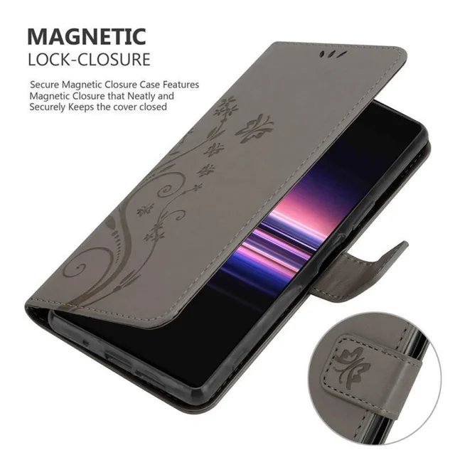 CADORABO Sony Xperia 5 v klasična črna - ovitek v cvetličnem dizajnu z magnetnim zapiranjem, stoječo funkcijo in režami za kartice