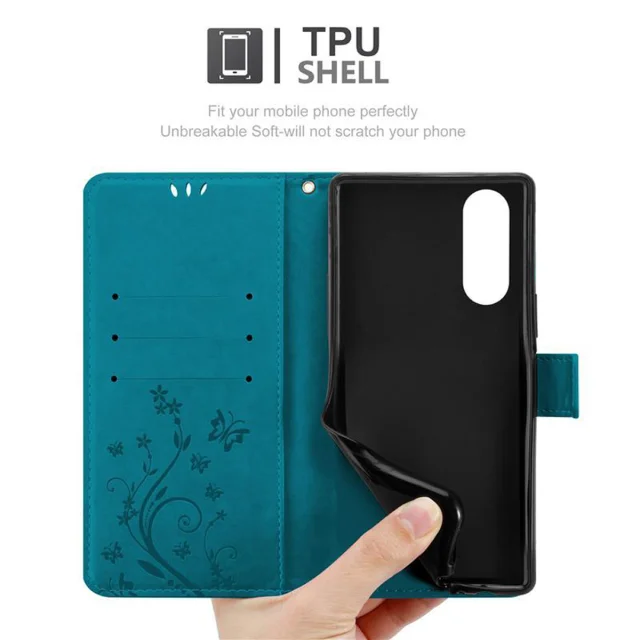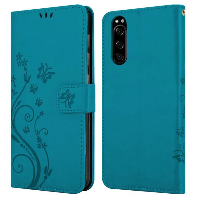 CADORABO Sony Xperia 5 v klasična rožnata zlata - ovitek v cvetličnem dizajnu z magnetnim zapiranjem, stoječo funkcijo in režami za kartice