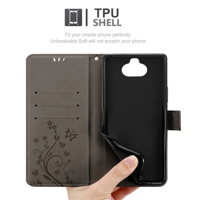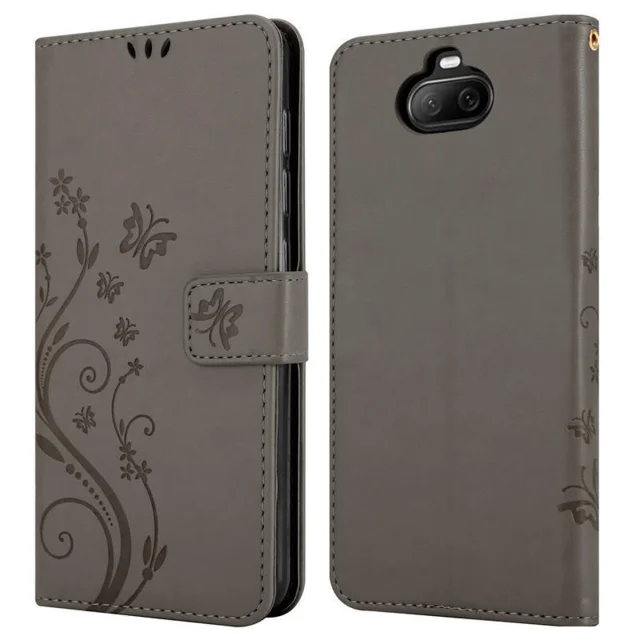 CADORABO Sony Xperia 8 v klasična črna - ovitek v cvetličnem dizajnu z magnetnim zapiranjem, stoječo funkcijo in režami za kartice