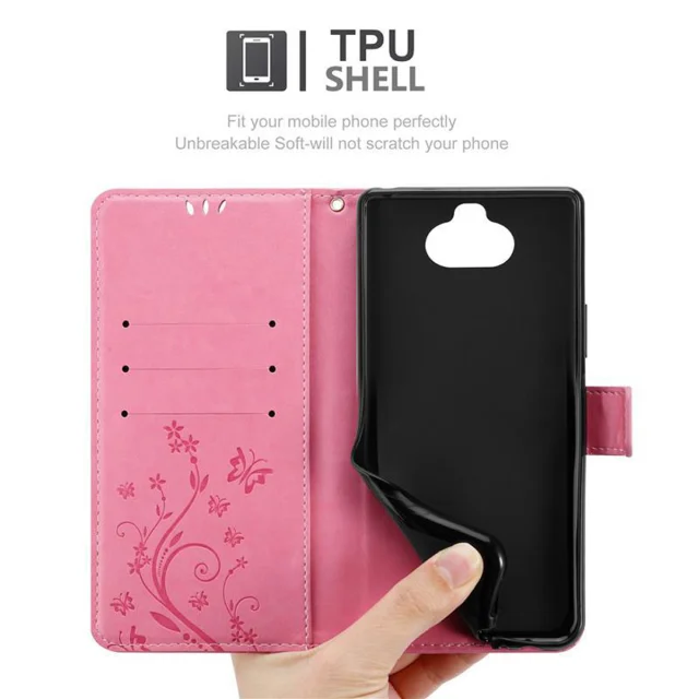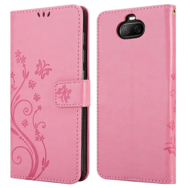 CADORABO Sony Xperia 8 v klasična zlata - ovitek v cvetličnem dizajnu z magnetnim zapiranjem, stoječo funkcijo in režami za kartice