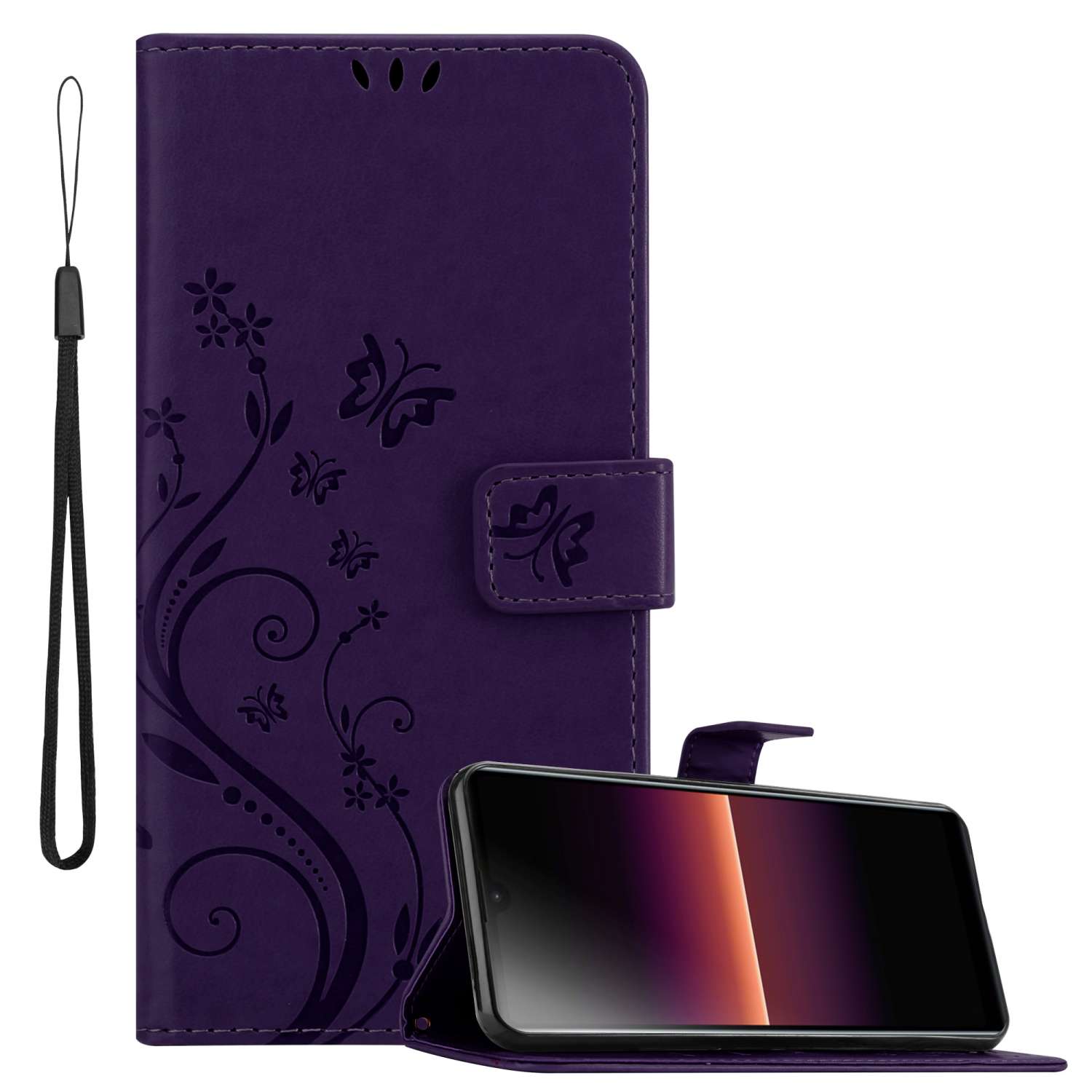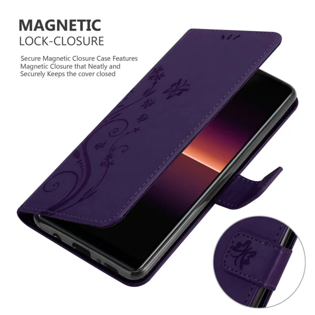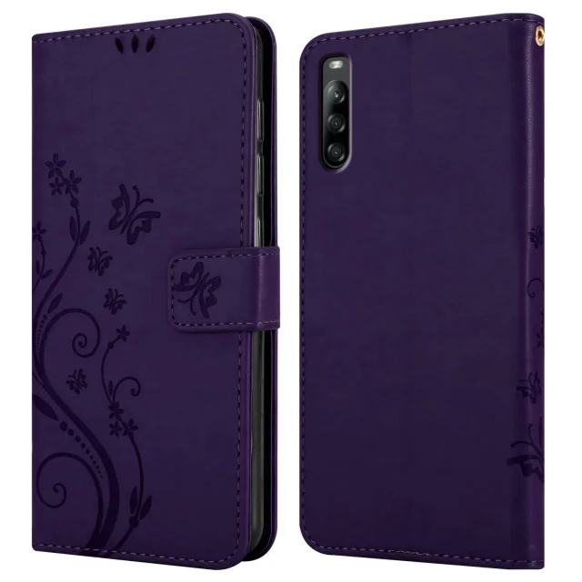 CADORABO Sony Xperia L4 in klasična temno modra - ovitek v cvetličnem dizajnu z magnetnim zapiranjem, stoječo funkcijo in režami za kartice