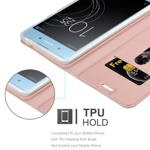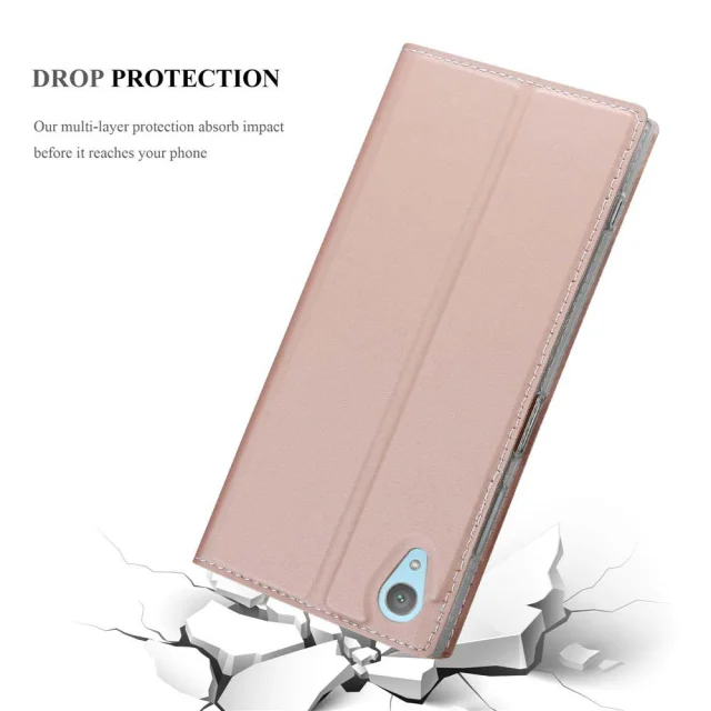 CADORABO Sony Xperia XA1 PLUS v klasična rožnata zlata - Zaščitni ovitek z magnetnim zapiranjem, stoječo funkcijo in režo za kartice