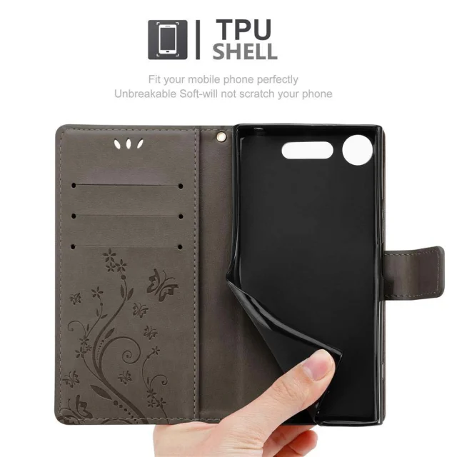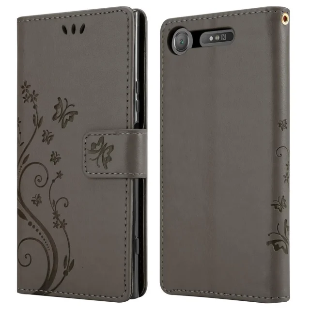 CADORABO Sony Xperia XZ1 v klasična črna - ovitek v cvetličnem dizajnu z magnetnim zapiranjem, stoječo funkcijo in režami za kartice