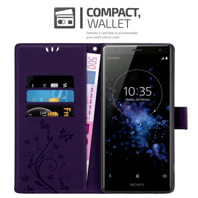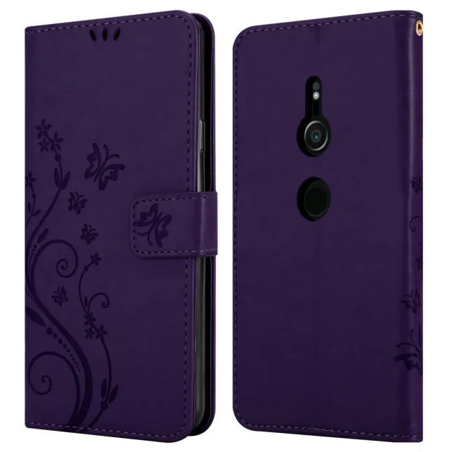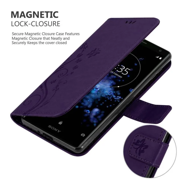 CADORABO Sony Xperia XZ2 v klasična temno modra - ovitek v cvetličnem dizajnu z magnetnim zapiranjem, stoječo funkcijo in režami za kartice