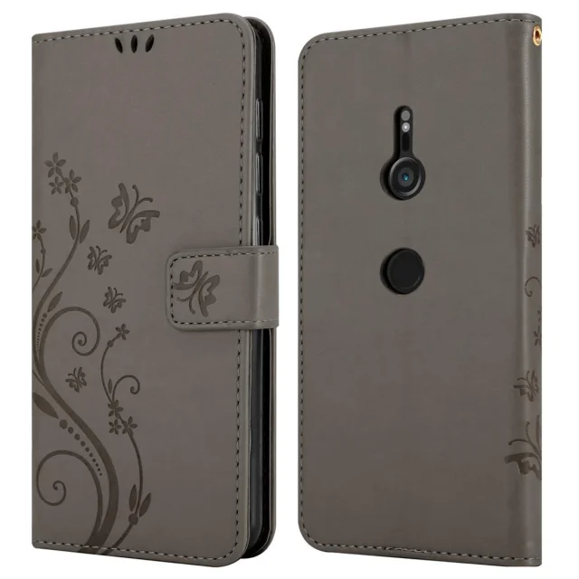 CADORABO Sony Xperia XZ3 v klasična črna - ovitek v cvetličnem dizajnu z magnetnim zapiranjem, stoječo funkcijo in režami za kartice