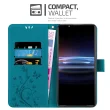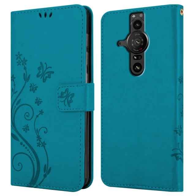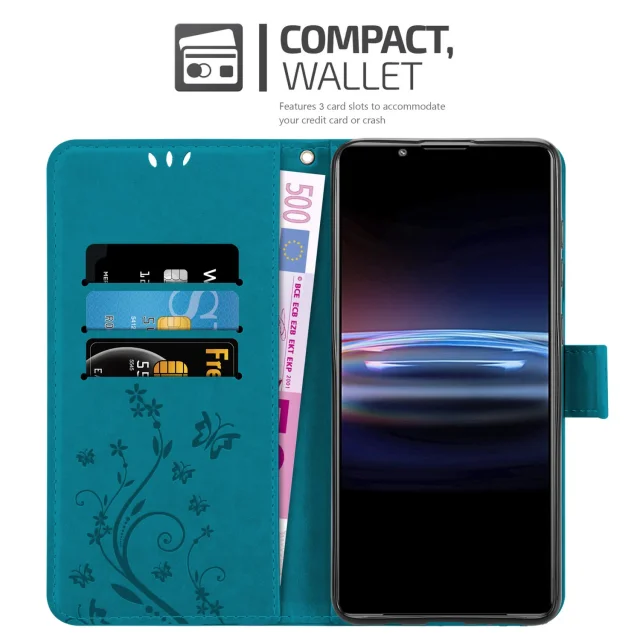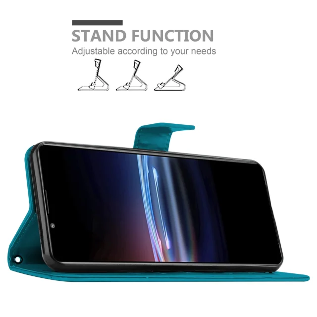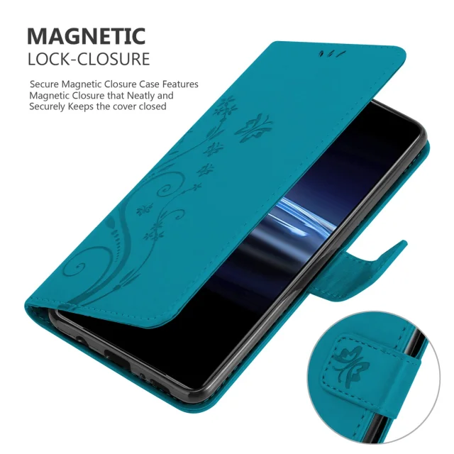CADORABO Sonyjem v cvetlični modri barvi - Zaščitni pokrov pri oblikovanju cvetja z magnetnim zapiranjem, stoječimi funkcijami in režami za kartice