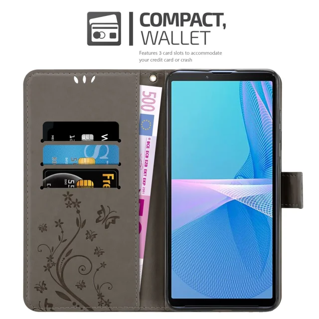CADORABO Sonyjem v cvetlični sivi barvi - zaščitni pokrov v oblikovanju cvetja z magnetnim zapiranjem, stoječimi funkcijami in režami za kartice