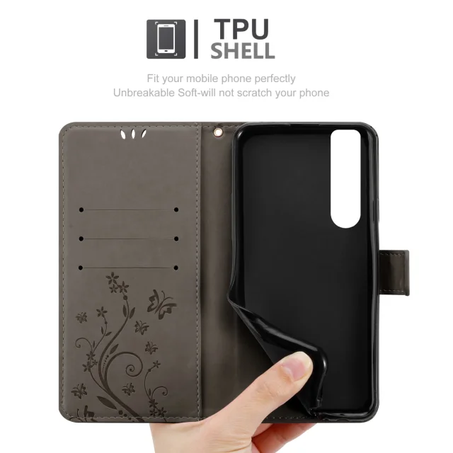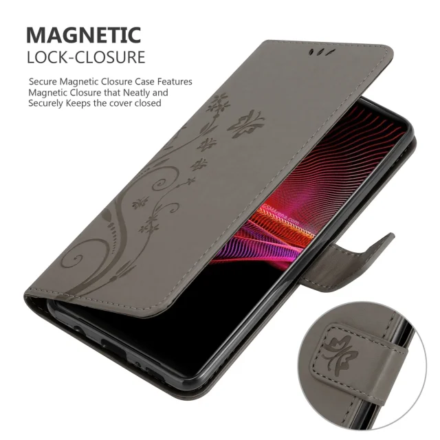 CADORABO Sonyjem v cvetlični sivi barvi - zaščitni pokrov v oblikovanju cvetja z magnetnim zapiranjem, stoječimi funkcijami in režami za kartice