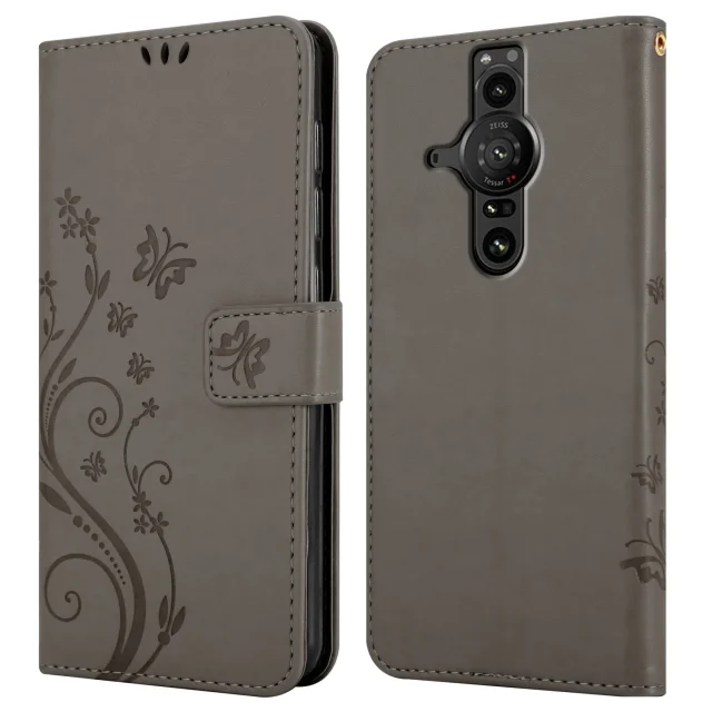 CADORABO Sonyjem v cvetlični sivi barvi - zaščitni pokrov v oblikovanju cvetja z magnetnim zapiranjem, stoječimi funkcijami in režami za kartice