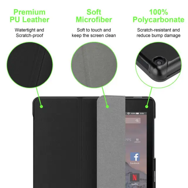 Cadorabo tablični ohišje, združljiv s Kindle v satenasti črni barvi - ultra tanek zaščitni pokrov z samodejnim zbujanjem in stojalo funkcijo