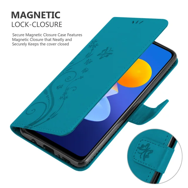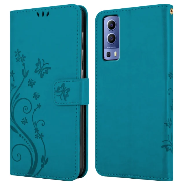 CADORABO vivo v cvetlični modri barvi - zaščitni pokrov pri oblikovanju cvetja z magnetnim zapiranjem, stoječimi funkcijami in režami za kartice