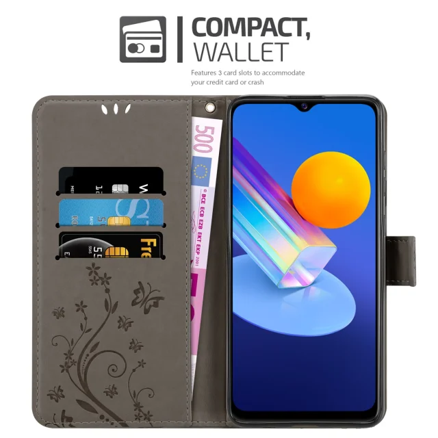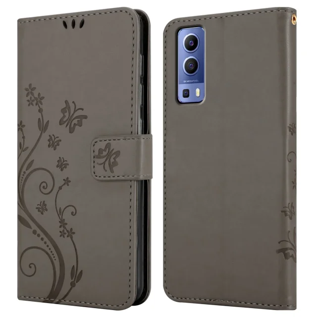 CADORABO vivo v cvetlični sivi barvi - zaščitni pokrov pri oblikovanju cvetja z magnetnim zapiranjem, stoječimi funkcijami in režami za kartice
