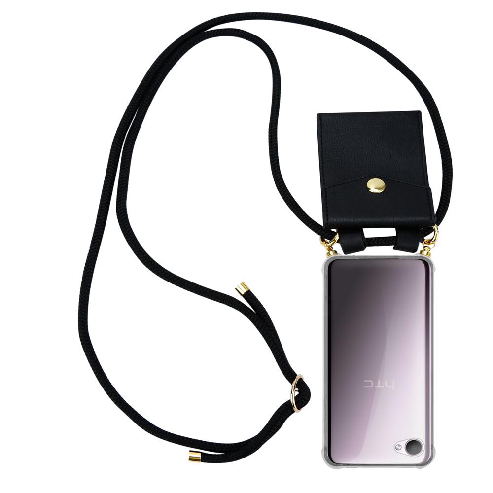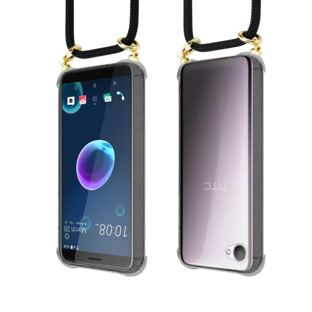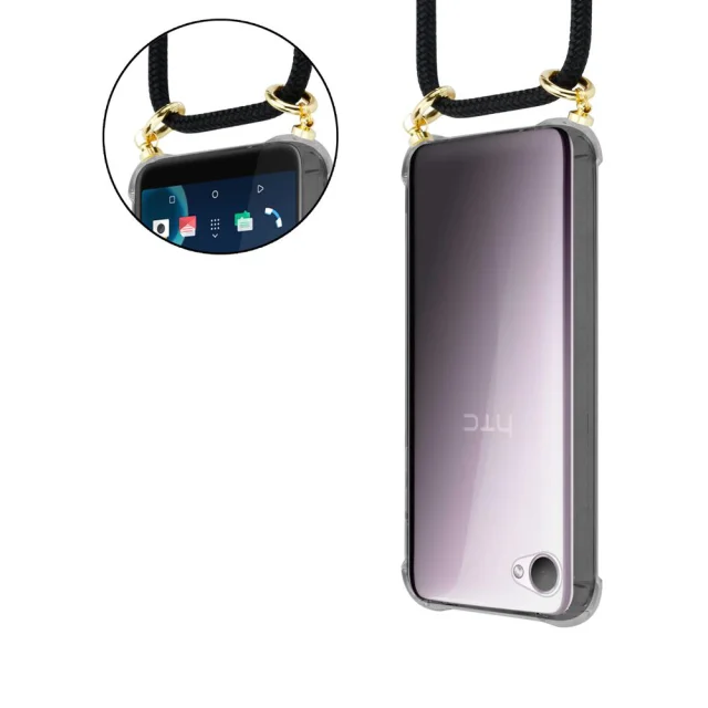 CADORABO VRGA ZA MOBILNO PELETON Združljivo s HTC v črni barvi - silikonski zaščitni pokrov z zlatimi obroči, kabelskim pasom in snemljivim ohišjem